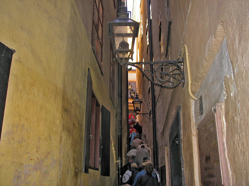 Самая узкая улица Стокгольма. Даже отдельная табличка с названием есть